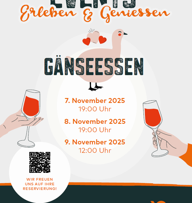 Am Fr. 7. / Sa. 8. November (abends) & So. 9. November (mittags) bieten wir Ihnen auch dieses Jahr den „Klassiker“, unsere Rotweinprobe mit Gans. Wir freuen uns, Ihnen das Menü vorstellen zu dürfen:
